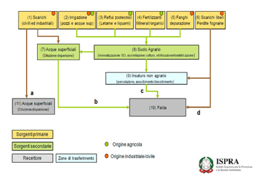 Fig. 4: Possibili fonti dell’inquinamento da nitrati in falda (fonte: ISPRA, 2015)