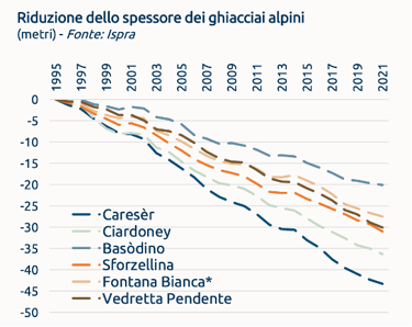 Fig. 2: Erosione delle risorse idriche glaciali (1995-2021)