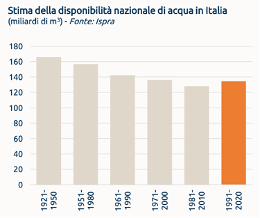 Fig. 1: Storico della disponibilità idrica italiana 1921-2020